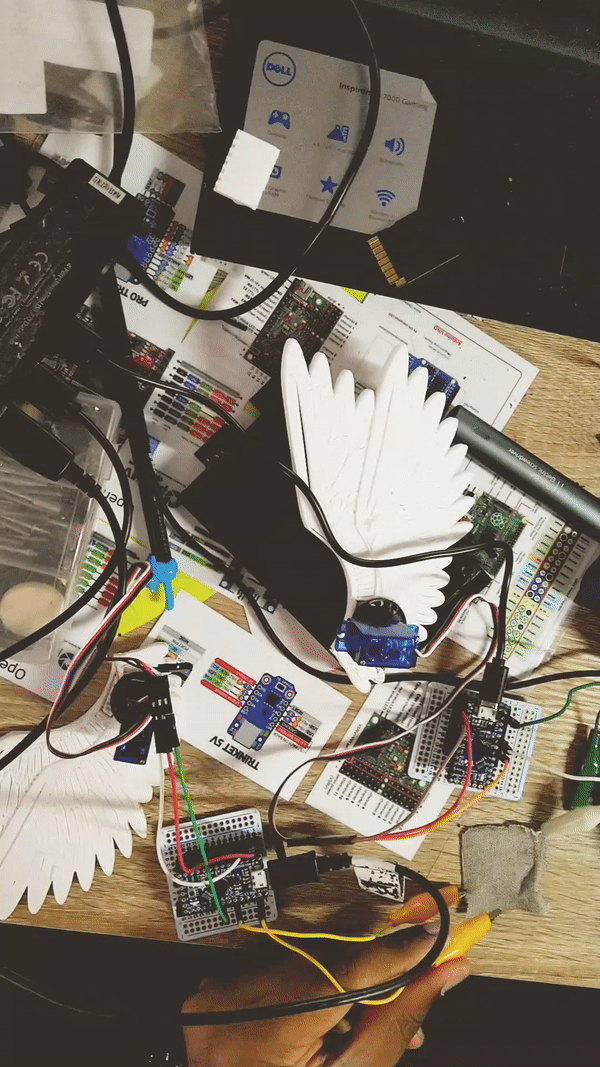 I stuffed the main circuit into the box, with the ‎servo attaching to the wing.‎‎ ‎‎