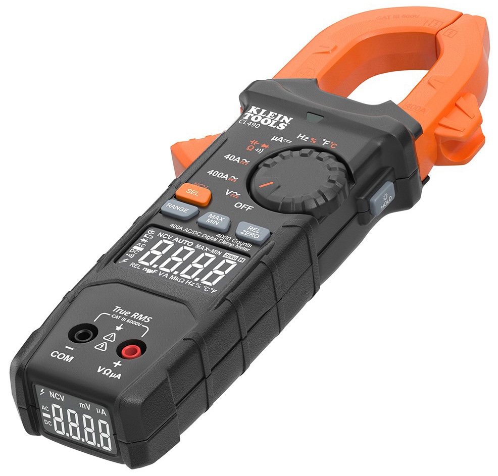 The Klein Tools CL490 dual-display 400 A AC/DC clamp meter is designed to give professionals increased accuracy and easy-to-read results