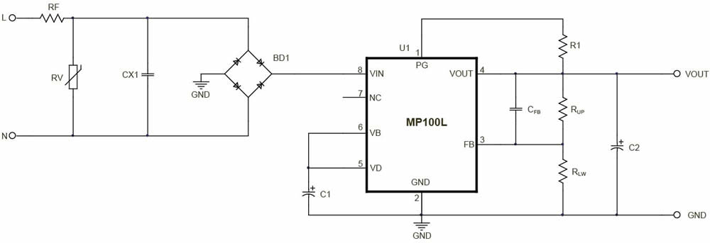MPS' MP100L is a compact, inductorless, good-efficiency, offline regulator. It steps down the AC line voltage to an adjustable DC output. It is a simple solution to provide a bias voltage to ICs in offline applications. Its integrated smart-control system uses AC line power only when necessary, thus minimizing device losses to achieve good efficiency. This device helps system designs meet new standby power specifications.